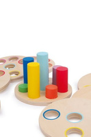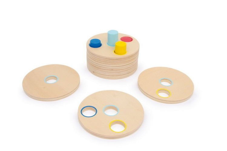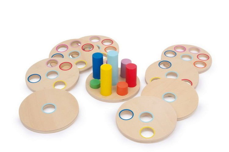 Patrz dokładnie, zastanawiaj się, wypróbuj i wciskaj odpowiednio - super gra do szkolenia motoryki i koordynacji wzrokowo-ruchowej! 8 stabilnych tarcz (grubość 1 cm) ze starannie wygładzonego sklejki do wciskania na kolorowe patyczki. Ponieważ patyczki są różnej długości i każda tarcza ma inną ilość otworów, rozwiązanie jest tylko jedno.