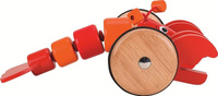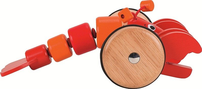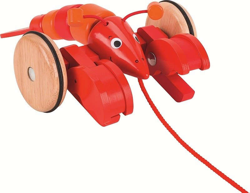 Rak został wykonany z drewna wysokiej jakości. Jego głównym atutem są szczypce, które zamykają i otwierają się na przemian, gdy dziecko ciągnie go za sową na sznurku.