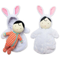 Lalka wyposażona w wyjątkowe przebranie zapinane na rzepy, które z pewnością przypadnie do gustu wszystkim maluchom. Przytulanka w śpiworku Królik Manhattan Toy posiada wygodny kaptur upodobniający ją do uroczego zwierzaka.