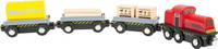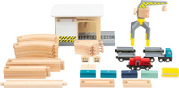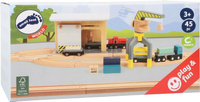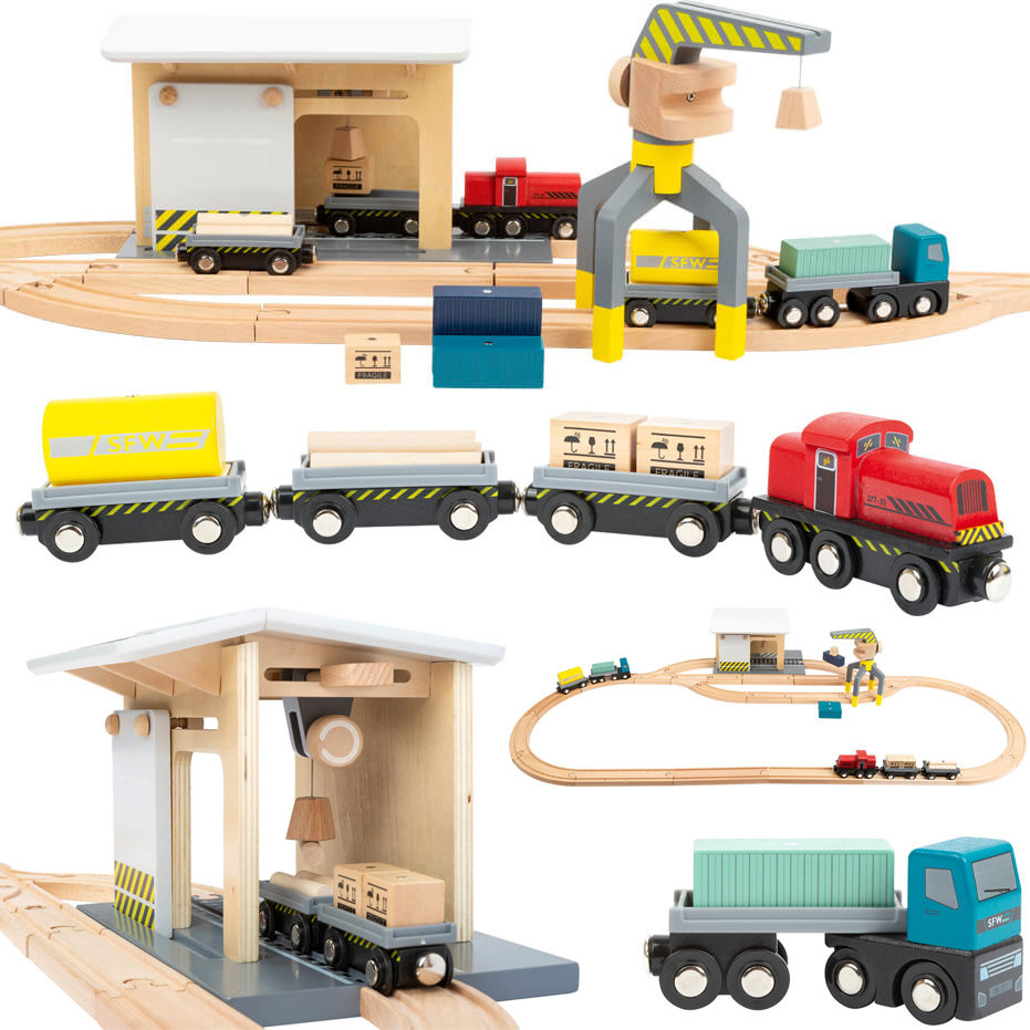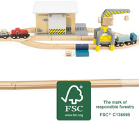 Ten towarowy pociąg wykonany z drewna certyfikowanego 100% FSC® oferuje wiele możliwości względem codziennej zabawy. Z tym zestawem prawdziwi fani mogą naśladować pracę w składzie towarowym i kreatywnie wyrażać siebie poprzez kompletowanie zawartych w zestawie elementów. Magnetyczne klocki jako kontenery oraz skrzynie zaopatrzone w magnesy, 25 części torowiska, dźwig obracający się o 360o oraz pojazdy posiadające magnetyczne przyczepy to główne elementy tego zestawu. Przesuwna ściana w składzie towarowym wraz ze zintegrowaną suwnicą oferują elastyczność na wszystkie sytuacje związane z przeładunkiem. Które produkty znajdą się w kolejnej dostawie? Ten zabawkowy zestaw jest kompatybilny z tymi oferowanymi przez większych producentów kolejek dla dzieci.
