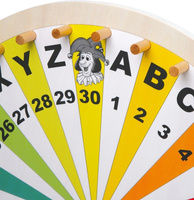 Super dodatek do gier w losowanie, z numerami od 1 do 30, literami od A do Z i 4 Jokerami! Na drewnianym, solidnym stojaku koło stoi bezpieczne i może się swobodnie kręcić. Poszczególne pola oddzielone są drewnianymi kołkami, które podczas ruchu wesoło terkoczą.