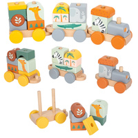 Złóż pociąg i wyjedź ze stacji! Ten drewniany pociąg w modnych kolorach wybiera się na wielką wycieczkę po dziecięcym pokoju dopiero po wejściu pasażerów- słonia, żyrafy, zebry i ich przyjaciół! Wysoko szczegółowy pociąg, który jest również zabawą w dopasowywanie kształtów i układanie w stosy, daje dzieciom możliwość budowania według własnych pomysłów. Następny przystanek: Safari! Zabawa i łączenie poszczególnych elementów ćwiczy umiejętności motoryczne.