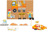 Budowlana zabawa z młotkiem i gwoździami! Dzieci wyposażone w tablicę korkową, młotek, gwoździe i dekoracyjne drewniane elementy, dzieci mogą tworzyć przeróżne obrazki z motywami budowlanymi. Niezależnie od tego, czy dziecko jest fanem budowlańców, betoniarek, dźwigów czy koparek, ten zestaw zawiera wszystko, co jest potrzebne do wykonania wszelkiego rodzaju widoków z placu budowy. Kto na początku potrzebuje pomysłów, może po prostu wziąć jeden z ośmiu szablonów i gotowe! Ta zabawa zręcznościowa wspiera rozwój kreatywności i daje dzieciom przestrzeń do tworzenia własnych dzieł i obrazków. Zestaw zapakowany jest w praktyczne pudełko.