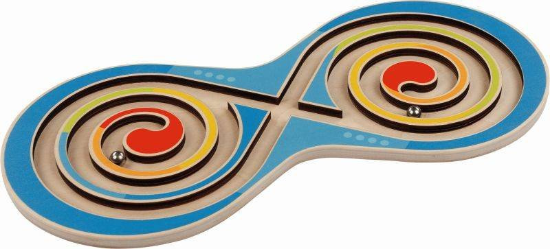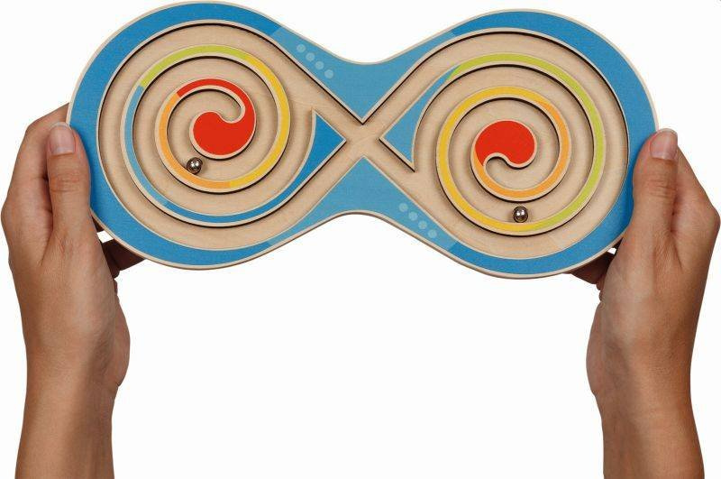 Gra składa się z systemu korytarzy oraz znajdujących się wewnątrz dwóch metalowych kulek, które należy doprowadzić na właściwe miejsce. Zabawka wykonana z wytrzymałego drewna najwyższej jakości. Stymuluje koordynację wzrokowo-ruchową oraz ćwiczy umiejętność skupiania uwagi.