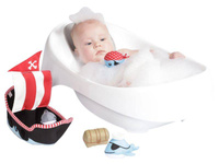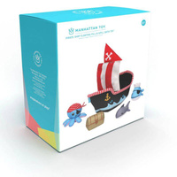 Pięcioczęściowy zestaw do kąpieli składa się z pirackiego statku, na którym znajdują się piraci- ośmiornica, rekin i wieloryb oraz ich łup- skrzynia ze skarbami. Rewelacyjni towarzysze kąpieli.