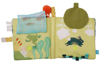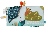 Szeleszcząca książeczka zapewnia wspaniałą bazę do opowieści oraz dobrą zabawę w czasie leżenia na brzuszku. Ta urocza, miękka książeczka zawiera różnorodne tekstury tkanin, które dostarczają nowych wrażeń i sprawią radość dziecku. Umieszczony na sznureczku króliczek śledzi każdą stronę historii, którą przedstawiają kolorowe ilustracje i ukryte w nich zabawne niespodzianki. Pętelka w górnej części książki umożliwia przymocowanie jej do spinek dla niemowląt, nosideł, spacerówek i nie tylko.