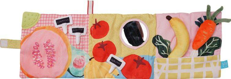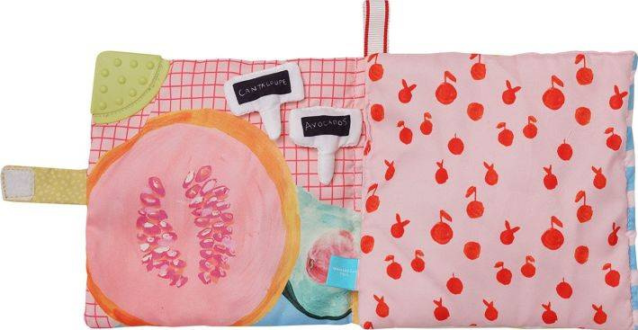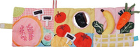 Mięciutka książeczka aktywizująca Farma Jabłek dla najmłodszych od Manhattan Toy zapewni znakomitą zabawę wszystkim ciekawym maluszkom. Urocza książka o tematyce owoców i warzyw zawiera różne struktury tkanin, które zainteresują naszą pociechę. Każda strona posiada kolorowe ilustracje, miękkie elementy i zabawne niespodzianki. Zamknięcie z tkaniny utrzymuje porządek na stronach po zakończeniu oglądania. W książce znajdziemy: wisienki 3D, kącik z gryzaczkiem, bezpieczne dla dziecka lusterko do odkrywania i kieszonkę w kształcie koszyka do przechowywania marszczonej marchewki i banana. Pętelka z materiału umożliwia przypięcie książeczki do nosidełka, wózka, bujaczka i nie tylko. Wspaniała okazja do zabawy na brzuszku, rozwoju motoryki małej, stymulacji sensorycznej oraz uczenia się przyczyn i skutków.