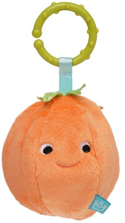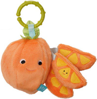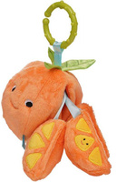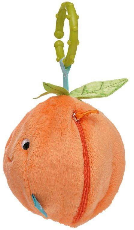 Sympatyczny i roześmiany owoc od Manhattan Toy z pewnością wywoła uśmiech na twarzach maluchów i zapewni im dużo rozrywki w trakcie podróży i spaceru. Zawieszka pomarańcza ma wyhaftowane rysy twarzy i zapinaną na zamek przegrodę, w której mieszczą się trzy plastry z miękkiej tkaniny w kolorze pomarańczowym. Przymocowane do miłych wstążeczek, posiadają unikalne cechy, takie jak: tekstura grzechotki, piszczałka i marszcząca się powłoka. Całość można przymocować do wózka lub fotelika za pomocą wygodnego klipsa, który pełni również funkcję gryzaka. Sprawdzi się do zabawy w domu jak i poza nim. Żywy i radosny odcień pomarańczy sprawi, że żaden maluszek nie wypuści zabawki z rączek.