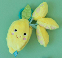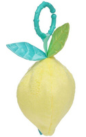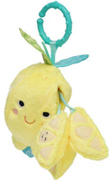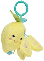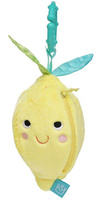Sympatyczna i roześmiana zawieszka od Manhattan Toy z pewnością wywoła uśmiech na twarzach maluchów i zapewni im dużo rozrywki w trakcie podróży i spaceru. Pluszowa cytryna ma wyhaftowane rysy twarzy i zapinaną na zamek przegrodę, w której mieszczą się trzy plastry z miękkiej tkaniny w kolorze żółtym. Przymocowane do miłych wstążeczek, posiadają unikalne cechy, takie jak: tekstura grzechotki, piszczałka i marszcząca się powłoka. Całość można przymocować do wózka lub fotelika za pomocą wygodnego klipsa, który pełni również funkcję gryzaka. Sprawdzi się do zabawy w domu jak i poza nim. Żywy i radosny odcień cytryny sprawi, że żaden maluszek nie wypuści zabawki z rączek.