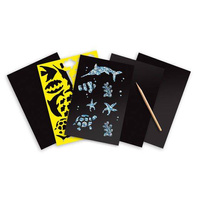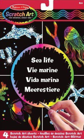 Wyjątkowy notes do wydrapywania tęczowych obrazków Morskie Życie Melissa & Doug spodoba się każdemu małemu artyście. Otwórz tabliczkę z rysunkami, narysuj lub prześledź swoje projekty i zobacz, jak przebijają się niesamowite efekty. Dzięki tej kieszonkowej, spiralnej książeczce do rysowania, dzieci mogą z łatwością tworzyć wyjątkowe dzieła. Książeczka zawiera 4 karty z tęczowym tłem, drewniany mini rysik oraz szablon z morskimi zwierzętami do odrysowywania. Produkty Scratch Art charakteryzują się jasnymi kolorami i wzorami ukrytymi pod matową powłoką.