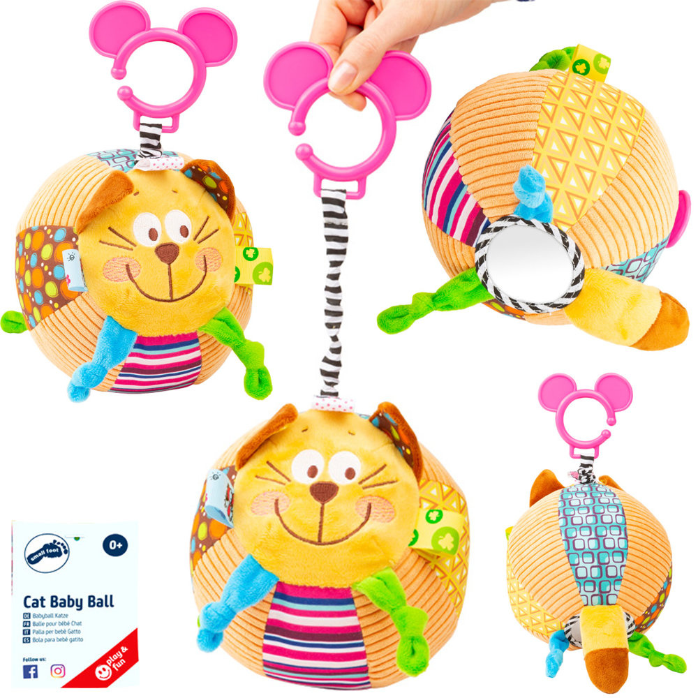 Piłka czy grzechotka? Ten uroczy, pluszowy kotek od Small Foot to jedno i drugie. Jest to zabawka ruchowa, która zachęca małe dzieci do odczuwania i dotykania różnych tkanin, dzięki różnym możliwościom chwytania. Odblaskowa powierzchnia z lustrem przyciągnie wzrok każdego malca. Dzięki praktycznej zawieszce kulę można wyciągnąć, po czym po ponownym wciągnięciu wydaje zabawny grzechoczący dźwięk. To idealny dodatek do wózków dziecięcych, mat do zabawy czy łóżeczka.