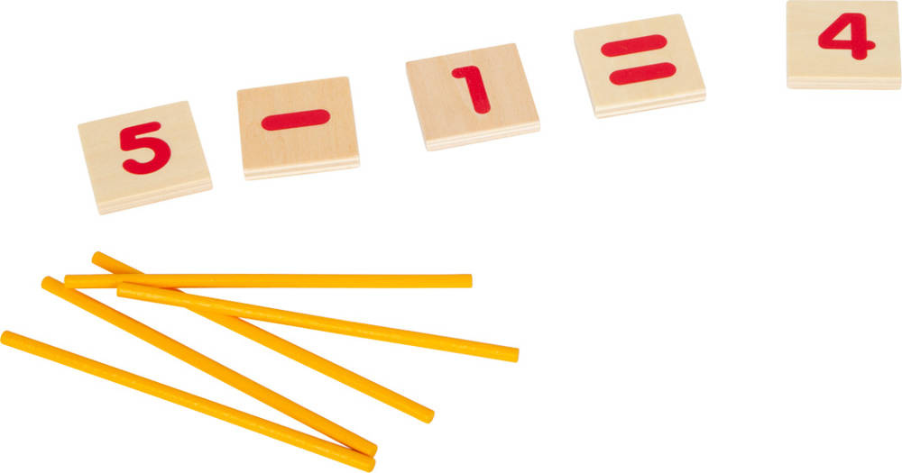 Wyjątkowa skrzynka z drewnianą grą matematyczną Small Foot do nauki wspiera dzieci w ich pierwszych operacjach matematycznych w zakresie liczbowym do 10 i przekroczeniu granicy dziesięciu. Kolorowe patyczki i drewniane tabliczki z cyframi mogą być używane do zadań polegających na dodawaniu, odejmowaniu. Dzięki tej pomocy można w przyjemny sposób trenować zadania matematyczne o różnych kombinacjach.