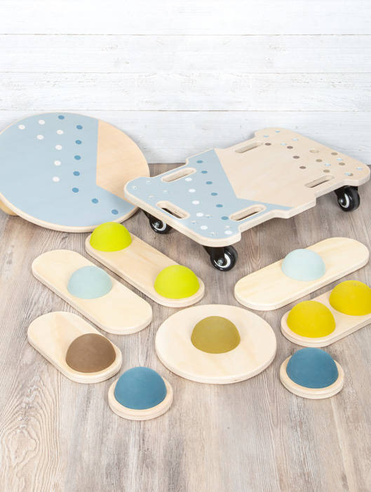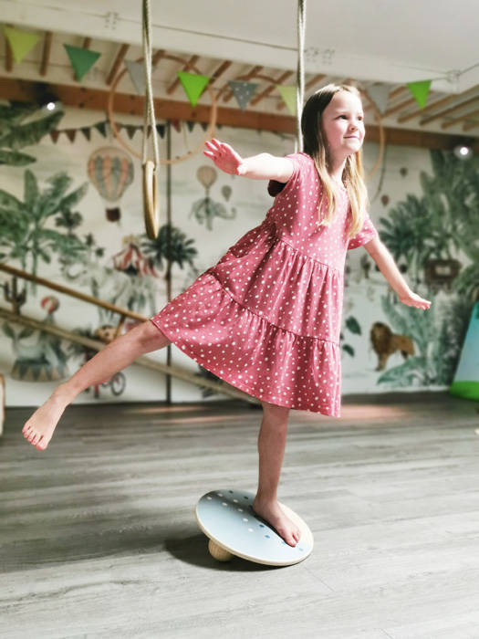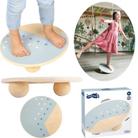 Stabilna, drewniana deska do balansowania Small Foot łączy ćwiczenia ruchowe z zabawą. Poziom trudności regulujemy przy pomocy dwóch drewnianych kulek, które można przykręcić w różnych pozycjach na spodzie deski. To rzuca wyzwanie i ćwiczy napięcie ciała i równowagę na różne sposoby. Okrągły kształt deski zapewnia dużo miejsca na nogi, a na środku lub po bokach spodu deski można zamontować jedną lub obie kule drewniane. Alternatywnie, obie drewniane kulki można przymocować w skrajnych punktach, dzięki czemu deskę balansową można dostosować do umiejętności i wieku dzieci. Deska balansowa może być używana pojedynczo lub jako część kreatywnego toru przeszkód składającego się z zabawek do ćwiczeń z linii produktów „Adventure”. Podstawowy design, proste kształty i duża ilość naturalnego drewna sprawiają, że ta deska z łatwością wkomponuje się w każdy pokój dzienny lub pokój dziecięcy. Nadaje się również do celów terapeutycznych.