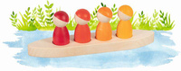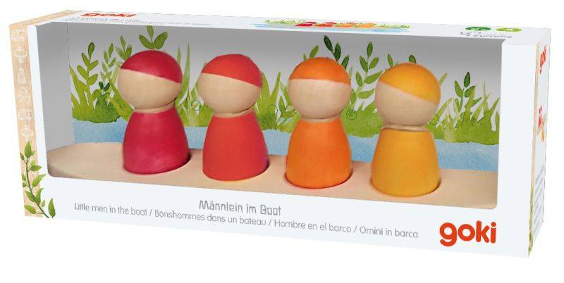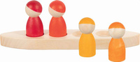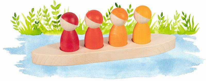 Drewniana łódka z kolorowymi pasażerami. Wyprodukowana w europie, wykonana z drewna klonowego.