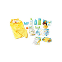 Mine to Love Melissa & Doug to 19-częściowy zestaw do pielęgnacji lalek, który oferuje realistyczne akcesoria do przewijania i kąpieli bobasków. Wykąp lalę lub misia używając szamponu i płynów do kąpieli oraz mydła, osusz uroczym ręcznikiem z sową. Przed zmianą pampersa wytrzyj dzidziusia chusteczkami w pudełku, użyj balsamu, tubkę z maścią i grzebień w kształcie ptaszka. W zestawie znajduje się nawet gumowa kaczuszka i książeczka do kąpieli, a także dwa rozmiary pieluch do przewijania oraz dwustronna karta aktywności wielokrotnego użytku. Dzięki zabawkom Mine to Love dzieci mogą odkrywać role i obowiązki dorosłych jednocześnie bawiąc się i rozwijając wyobraźnię.