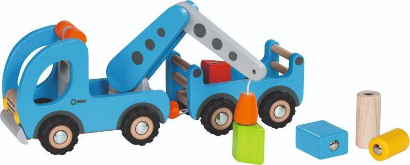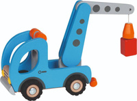 Odpowiedni do wieku, funkcjonalny, łatwy w użyciu żuraw wykonany z drewna, został zaprojektowany tak aby był dostosowany do potrzeb i możliwości jego użytkowników. Rozkładany maszt, wysokiej jakości gumowe opony, łatwość w sterowaniu i wytrzymałość to wszystko cechy tej wspaniałej maszyny. Dołączoną do zestawu przyczepę można z łatwością załadować dzięki magnetycznemu podnośnikowi umieszczonemu na końcu żurawia.
