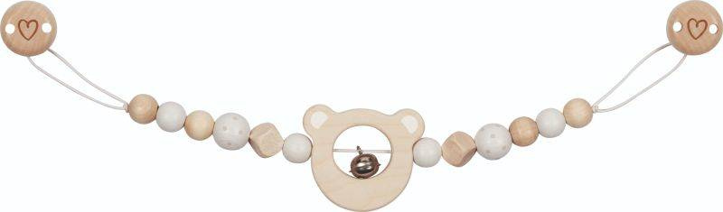 Niezwykła dekoracja wyposażona w dzwoneczek, mocowana za pomocą dwóch klipsów. Zawieszka została wykonana z drewna. Zawieszona w wózku staje się dla najmłodszych atrakcją, która zachęcająca do prób chwytania. Stanowi doskonały i naturalny trening małej motoryki i koordynacji ruchowej.
