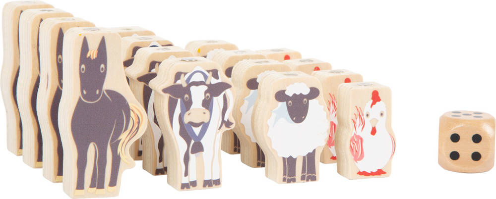Dzięki tej przyjaznej dla dzieci kolekcji gier z serii gier „4 Friends” Small Foot, „Heinz” kogut, „Fritz” koń, „Olga” krowa i „Schippy” owca mają wszelkie możliwości zabawnego odkrywania świata wokół nich na ich farmie. Niezależnie od tego, czy chodzi o klasyczną grę Ludo, zabawną grę drabinową, szybkie wyścigi konne, czy też układanie w stosy zwinnych zwierząt - ci czterej przyjaciele gwarantują długotrwałą zabawę dla całej rodziny. Magnesy znajdujące się we wszystkich elementach gry umożliwiają układanie zwierząt w stos. W zestawie solidne, drewniane tabliczki z planszami do gry i wysokiej jakości pudełko do przechowywania. Każde ze zwierząt reprezentuje konkretny kolor i ma swój specjalny ślad, dzięki czemu można je przypisać do odpowiednich miejsc początkowych.