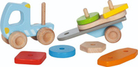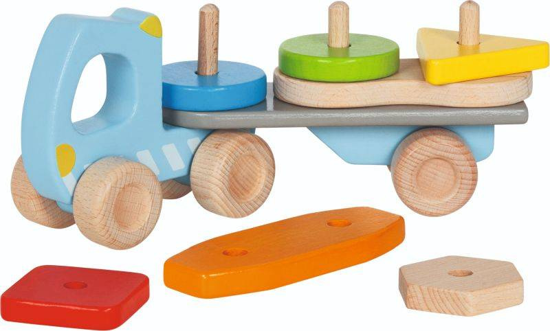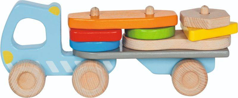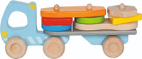Zabawa autkiem oraz nakładanie klocków na paliki wspiera rozwój umiejętności motorycznych dziecka. Ciężarówka może przewozić swoje ładunki z miejsca na miejsce, co staje się ciekawym tematem do zabawy.