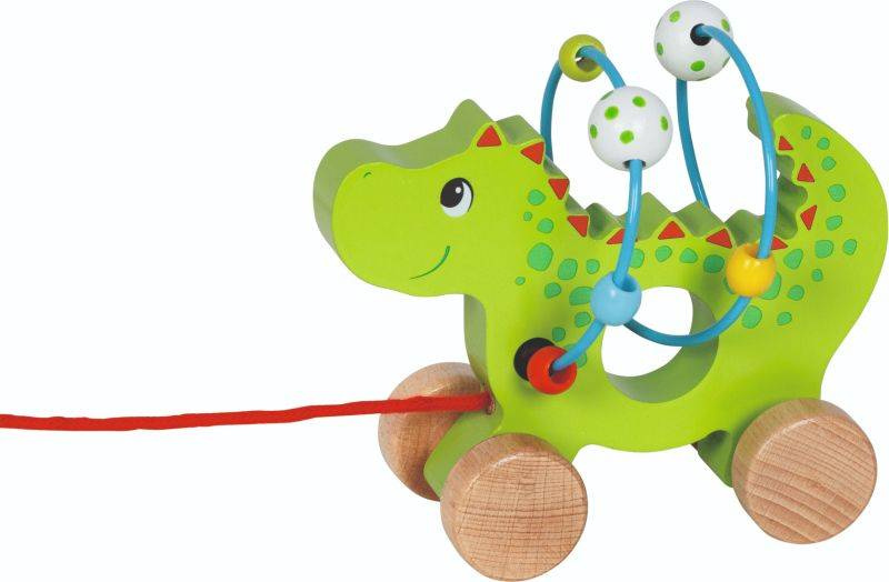 Smok z pętlą motoryczną na grzbiecie to doskonała zabawka dla dzieci. Trenuje zdolności małej motoryki- w czasie zabawy pętlą, i dużej- w czasie chodzenia i ciągnięcia zabawki na sznurku.