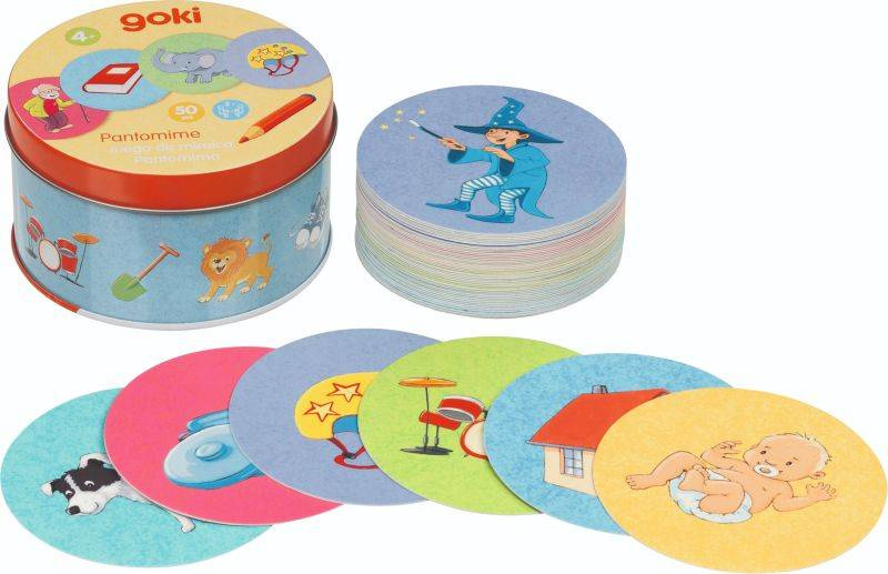50 kart do gry w kalambury. Metalowe pudełko do przechowywania doskonale sprawdzi się w podróży.