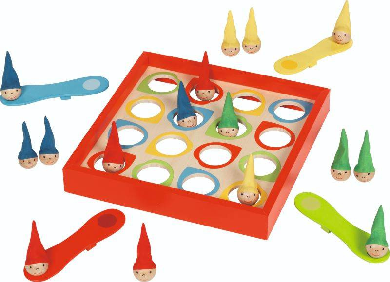 Przygotuj wyrzutnię i pomóż krasnoludkom wskoczyć do właściwych otworów na planszy. Ten, kto zdobędzie najwięcej punktów wygrywa.