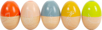 Potrząsaj, grzechotaj, tocz i twórz muzykę! Te muzyczne grzechotki ,,Groovy Beats" Small Foot w kształcie jajek tworzą dźwięki miłe dla naszych uszu. Każda z pięciu grzechotek wykonanych z mocnego, litego drewna wydaje inny dźwięk i oferuje wszelkiego rodzaju rytmiczną zabawę. Jajka mają piękny kształt i można je łatwo chwycić w dłonie, a dzięki połączeniu naturalnego drewna i nowoczesnych, kontrastujących kolorów, muzyczne jajka przyciągają wzrok wszystkich miłośników muzyki.