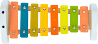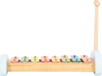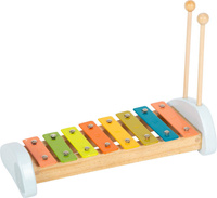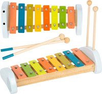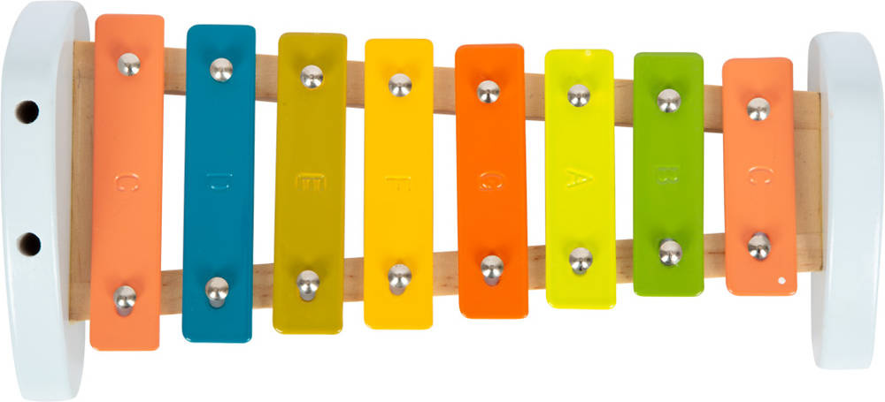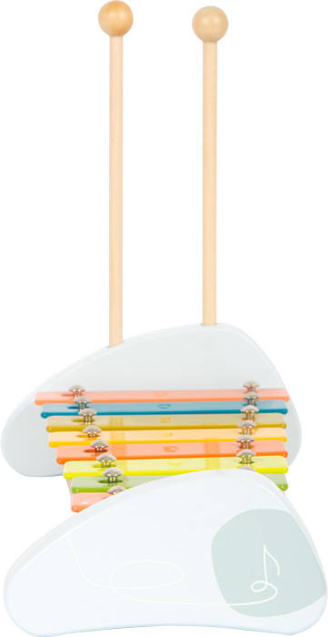 Drewniany ksylofon „Groovy Beats” Small Foot to idealne wprowadzenie do świata dźwięków. Dzieci nie muszą nawet umieć czytać nut, aby zagrać swoje pierwsze piosenki na tych kolorowych dzwoneczkach. Paski dźwiękowe są oznaczone kolorami i pomagają maluchom w tworzeniu pierwszych kompozycji muzycznych wraz z nutami. W zestawie solidne młotki wykonane z litego drewna. Barwne i wesołe cymbałki przyciągną wzrok także przedszkolnej orkiestry, dzięki delikatnym niebieskim kolorom z elementami naturalnego drewna i kolorów tęczy. Ksylofon w zabawny sposób ćwiczy świadomość akustyczną wraz z poczuciem rytmu oraz pierwszym zrozumieniem tonów muzycznych. W ten sposób młodzi, aspirujący muzycy mogą swobodnie rozwijać swoją kreatywność i wrażliwość muzyczną.