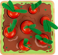 Kolorowa, przyjazna dzieciom, drewniana gra Marchewka Small Foot w dopasowywanie kształtów i sortowanie jest zgodna z metodą pedagogiczną Montessori i zachęca dzieci do samodzielnego sortowania, liczenia i układania. Celem jest posortowanie siedmiu różnej wielkości marchewek przez odpowiednie otwory w doniczce. Zielone kawałki filcu nadają marchewce realistyczny wygląd i są świetnymi zabawkami do odgrywania ról dla młodych, ambitnych ogrodników. Gry polegające na sortowaniu i dopasowywaniu kształtów ćwiczą zdolności motoryczne dzieci, percepcję i zrozumienie rozmiarów, a także ich sortowanie.