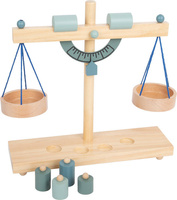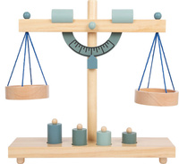 Stabilna, drewniana waga szalkowa Mały market Small Foot uszczęśliwi każdego początkującego sprzedawcę. Najmłodsi mają pod ręką odpowiednie narzędzie, gdy ważą żywność dla swoich klientów w sklepie spożywczym lub na straganie dla dzieci. Cztery różne ciężary pomagają określić ciężar całkowity, a dwie przeciwwagi przesuwne służą do regulacji wagi. Dzieci w zabawny sposób wyczuwają wagę i równowagę. Podczas zabawy w sklep nasze pociechy rozwijają swoje umiejętności społeczne i wcielają się w różne role. Wagi sklepowej nie może zabraknąć w żadnym domowym sklepiku i na straganie.