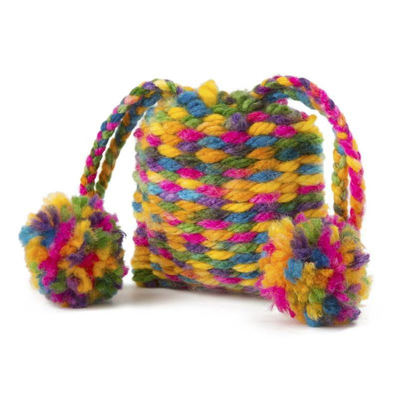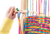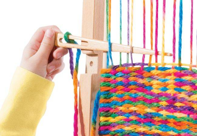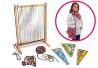 Dzieci będą zachwycone możliwością tworzenia na rzemieślniczym krośnie tkackim. Dzięki łatwej w użyciu, regulowanej ramce, dużej drewnianej igle i 83 metrowej tęczowej włóczce, dzieci mogą zrobić szalik, podstawkę z frędzlami, woreczek ze sznurkiem, torbę do noszenia- lub cokolwiek, co zaprojektują samodzielnie! Krosno zawiera również elementy do wykonania trzech gobelinów z obrazami zwierząt.