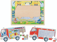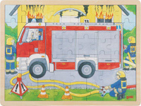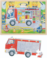 Pojazd straży pożarnej można tutaj układać warstwami - dzięki tej pomysłowej drewnianej układance Twoje dziecko pozna wyposażenie wozu strażackiego.