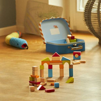 Walizka pełna klocków, to wszystko czego „mały budowniczy” potrzebuje do szczęścia. Połączenie kolorowych i naturalnych klocków nadaje temu zestawowi charakteru. Zestaw można bez problemu zabrać w dowolne miejsce, a po zabawie klocki ponownie szybko spakować do opakowania. Komplet składa się z 48 klocków.