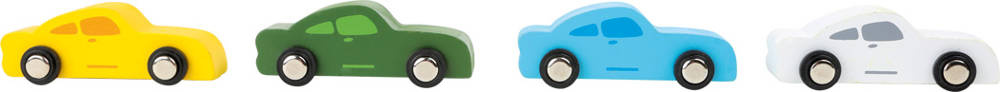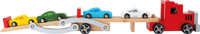 Drewniana laweta Small Foot dostarczy nowe modele samochodów do kącika zabaw każdego miłośnika pojazdów. Cztery kolorowe autka mogą wygodnie wjechać na dwupiętrową lawetę, która jest rozkładana, a barierki na jej brzegach zabezpieczają autka przed spadnięciem. Przyczepa jest połączona z czerwoną ciężarówką, która czeka na wyruszenie w długą podróż.