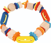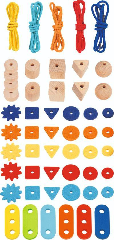 Projektowanie i nawlekanie poszczególnych elementów na sznurek rozwija wyobraźnię oraz umiejętności motoryczne.