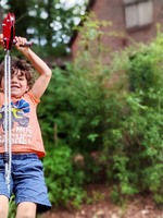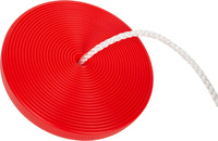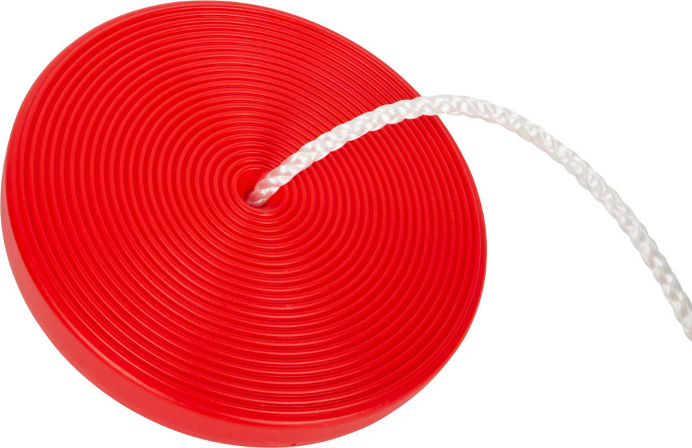 Lina tyrolki dla dzieci wykonano z mocnej stali z gumową wyściółką, która pozwala na delikatne hamowanie w odpowiednim momencie. Lina do huśtawki jest regulowana długością, a doczepione do niej siedzisko w intensywnie czerwonym kolorze pozostaje wygodne i praktyczne – zjazd może odbywać się na stojąco albo na siedząco.