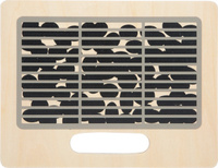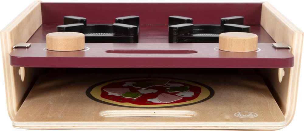 Kuchenka polowa posiada ruchome pokrętła oraz dwie płyty imitujące blachę do pieczenia oraz grill.