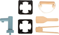 - liczne akcesoria kucharskie (patelnia, garnek z pokrywką, drewniana szpatułka, szczypce do grillowania, ręcznik kuchenny, dwustronna blacha m.in. do pieczenia pizzy).