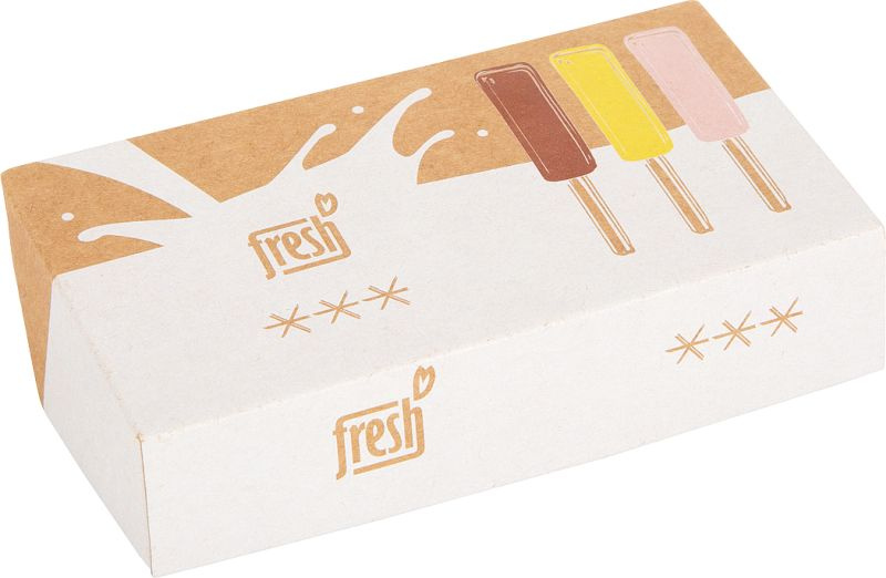 Opakowanie, w którym można przechowywać lody zarówno podczas zabawy, jak i po jej zakończeniu, wykonano z przyjaznej dla środowiska, nieprzetworzonej tektury.