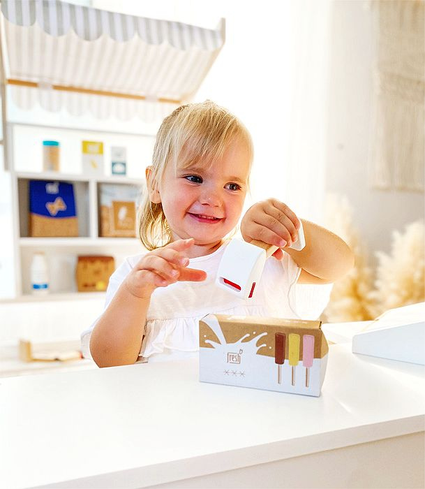 Zabawkowy zestaw lodów można uzupełnić o inne artykuły w ramach serii "Fresh" Small Foot. Polecamy m.in. trzypiętrowy stojak z lodami Small Foot (12232) oraz wieloelementową, drewnianą lodziarnię (11815).