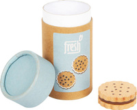 Przechowywanie ciastek może się odbywać w dołączonym opakowaniu o cylindrycznym kształcie. Dużą zaletą jest to, że zostało ono wykonane z ekologicznego materiału w postaci biodegradowalnej tektury.
