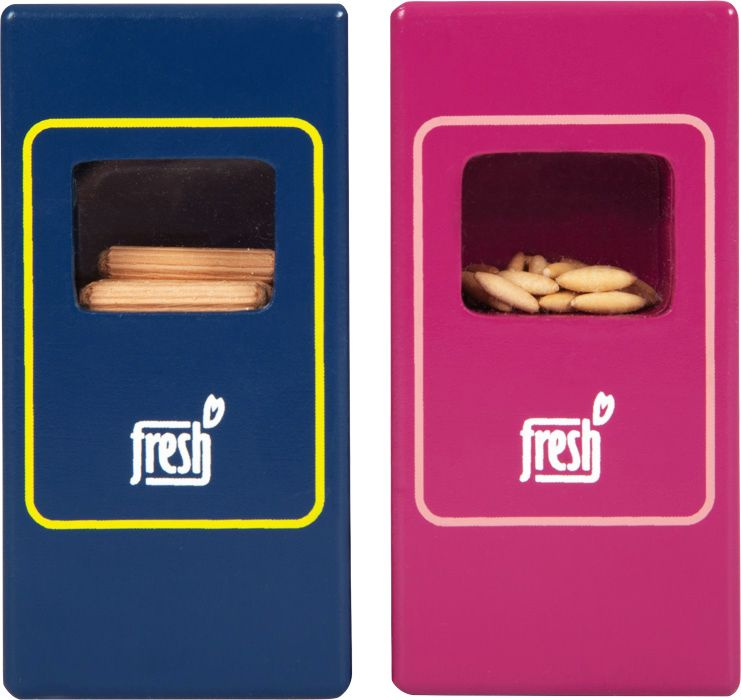Atrakcyjność zabawy podniosą okienka z pleksi zastosowane w opakowaniach ryżu i makaronu. Dzięki nim maluch może podejrzeć dany produkt. Z kolei gdy nim potrząśnie, rozlegnie się charakterystyczny odgłos przesypywania.