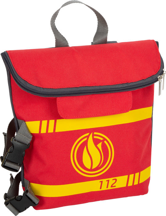 Dzięki realistycznemu plecakowi w ostrzegawczych kolorach i regulowanymi paskami mali strażacy zawsze szybko dotrą na miejsce zdarzenia by udzielić odpowiedniej pomocy. Podwójny zamek pozwala na szerokie rozpięcie plecaka, a gumowe otwory w plecaku zapewniają niezbędny porządek oraz szybki dostęp do ekwipunku wykonanego z wytrzymałego drewna. Dodatkowe paski zatrzaskowe na plecaku służą do mocowania akcesoriów. Praktyczny plecak strażacki z pełnym wyposażeniem umożliwi dzieciom odgrywanie ekscytującej akcji strażackiej.
