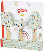 Trzyczęściowy zestaw narzędzi ogrodowych o uroczym designie, w którego skład wchodzą dwie łopatki i grabki. Dzięki nim dzieci mogą sumiennie pomagać na balkonie lub w ogrodzie. Akcesoria ogrodowe z drewnianą rączką i bez ostrych krawędzi.