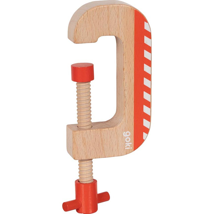 Zacisk śrubowy drewniany do warsztatu dla dzieci Goki. Z tym drewnianym zaciskiem śrubowym mali mistrzowie i mistrzynie
