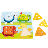 Kto ma kolce, a kto nosi pióra? Kolory, kształty, wielkości i zwierzęta - z tą klasyczną drewnianą zabawką można się wiele nauczyć. Sorter drewniany to rodzaj zabawki, która ma znaczny wpływ na rozwój dzieci w początkowym okresie życia. Podczas wciągającej zabawy dziecko trenuje prawidłowe dopasowywanie kolorów i kształtów. Sympatyczne zwierzaki oraz przyjemna i kontrastowa kolorystyka sprawią, że maluch od razu zainteresuje się tą drewnianą zabawką.