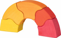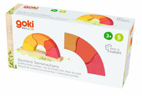 Układanka drewniana z klocków Wschód Słońca Goki została stworzona wyłącznie z drewna wysokiej jakości, a do pomalowania klocków użyto farb w 100% bezpiecznych dla dzieci. Maluch będzie mógł stworzyć wschód słońca lub np. kolory łuk. Układanka drewniana z klocków Wschód Słońca Goki może stanowić również niesamowicie barwną i kontrastową dekorację wnętrza. Zestaw składa się z 6 elementów (5 klocków i podstawy). To tzw. "pewniak" na prezent dla każdego chłopca i dziewczynki w wieku od 3 lat.