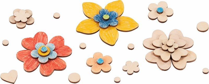 "Magia Kwiatów" to zestaw 75 drewnianych płytek do pokolorowania i swobodnego łączenia, skierowany do małych artystów. Wykorzystanie elementów może być bardzo różne, np. mogą stanowić dodatki do pięknych kartek okolicznościowych lub też można z nich przygotować cudowne dekoracje do dziecięcego pokoju. Komplet stworzony został z myślą o dzieciach 3 letnich i starszych.