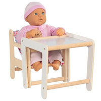 To krzesło dla lalek ma wszystko czego potrzeba, a za pomocą kilku prostych kroków, staje się ono miejscem do siedzenia przy stole. Projekt i technologia tej drewnianej zabawki z pewnością zachwyci rodziców lalek! Idealne krzesełko do karmienia! Dzięki subtelnemu wzornictwu ten nowoczesny mebel będzie dobrze pasował do wystroju każdego pokoju dziecięcego. To krzesełko imponuje klientom widocznymi elementami z litego drewna i estetycznie wykończonym zaokrąglonym krawędziom.