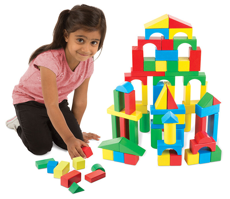 Zestaw 100 drewnianych klocków, różniących się kształtem i kolorami to kolejna propozycja kreatywnej zabawki od Melissa and Doug. Producent w przypadku tej zabawki postawił na sprawdzoną na przestrzeni lat klasykę w najlepszej jakościowo odsłonie. Do wyprodukowania zestawu użyto bowiem drewna wysokiej jakości oraz farb w 100% bezpiecznych dla zdrowia. Liczba elementów sprawia, że do wspólnej zabawy zasiąść może więcej niż 1 osoba. Zabawka pozwala na rozwój umiejętności motorycznych, kreatywności i wyobraźni. Dzieci nauczą się także rozpoznawać kształty i kolory. Produkt przeznaczony jest dla chłopców i dziewczynek w wieku 2-5 lat.